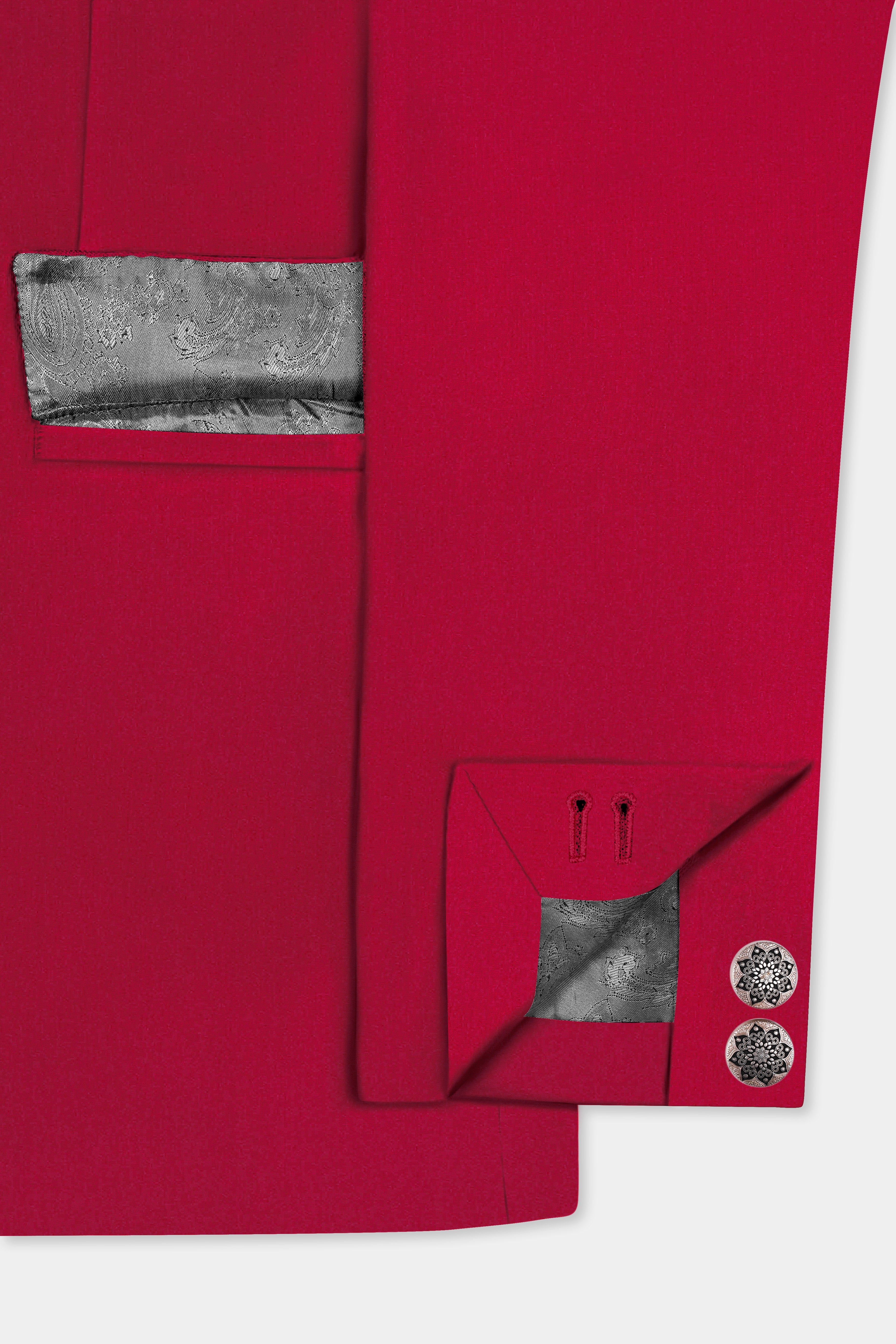 Vermilion-Chili Red Solid Wool Rich Bandhgala Slight Stretch SuitVermilion-Chili Red Solid Wool Rich Bandhgala Slight Stretch Suit