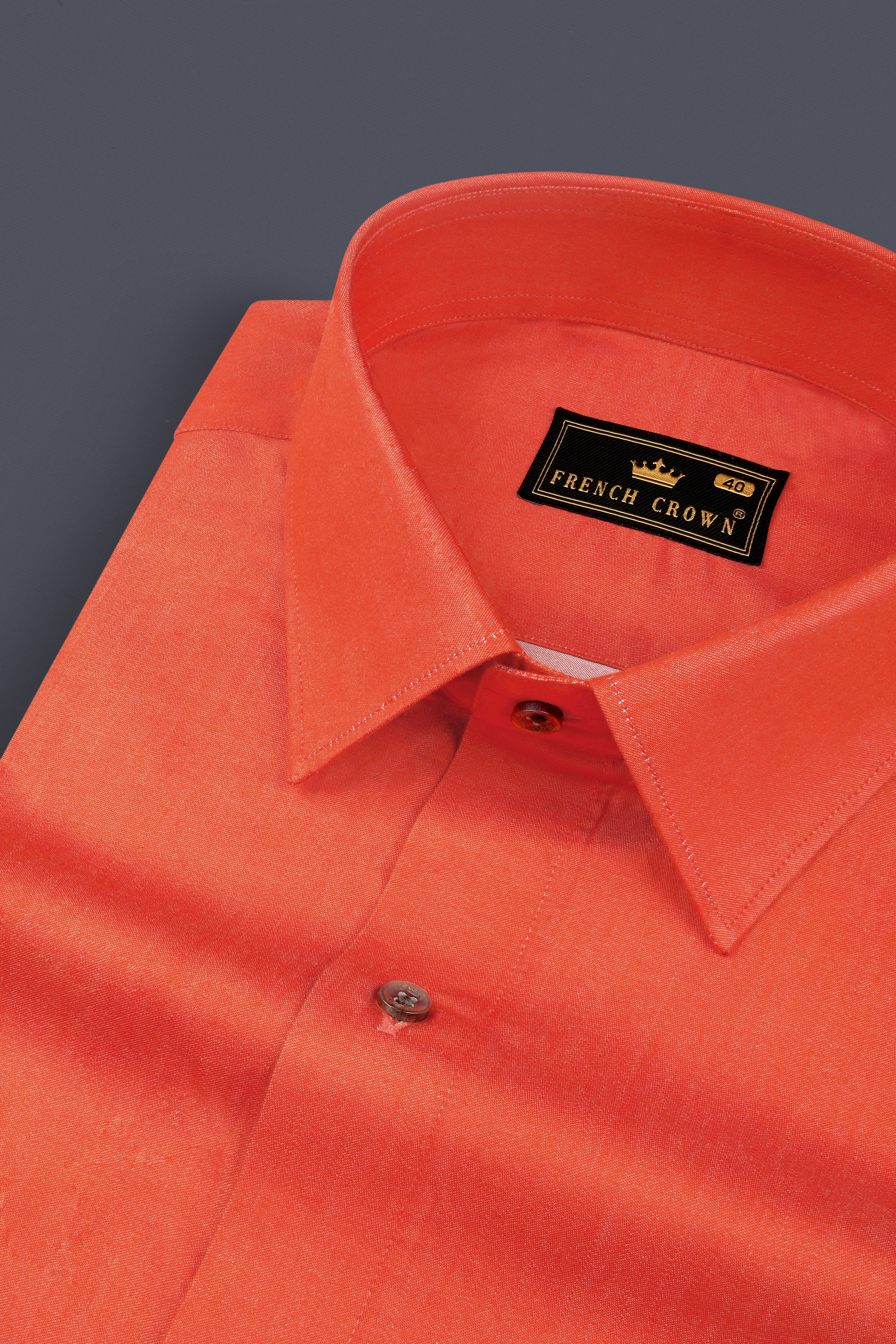 Sunrise Orange Solid Chambray Premium Giza Cotton Shirt