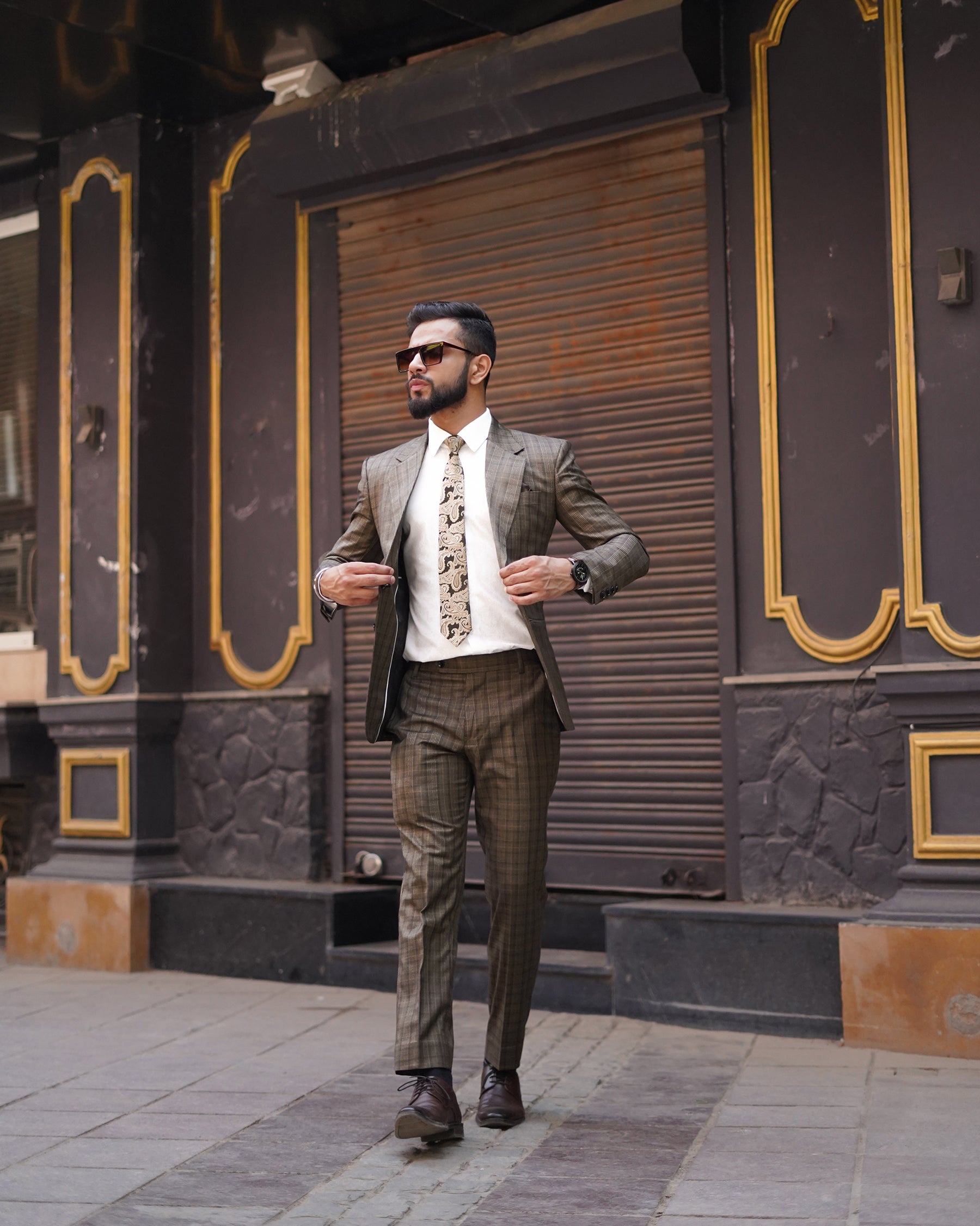 Apricot Brown Subtle Checkered Wool Rich Suit