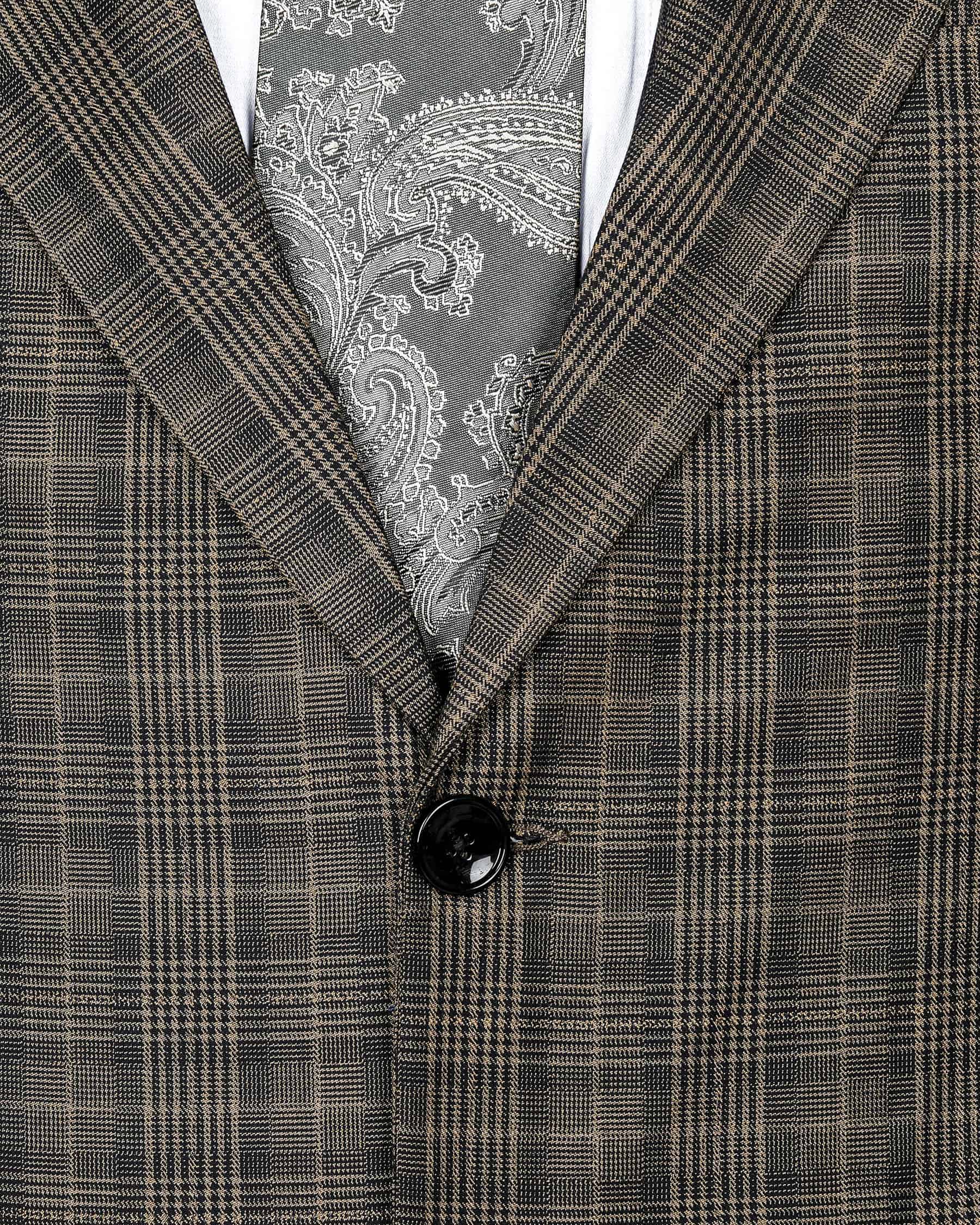 Stand out and make a statement in this subtle glen Walnut suit. This stylish, medium weight fabric has a rich textured appearance and soft hand-feel.