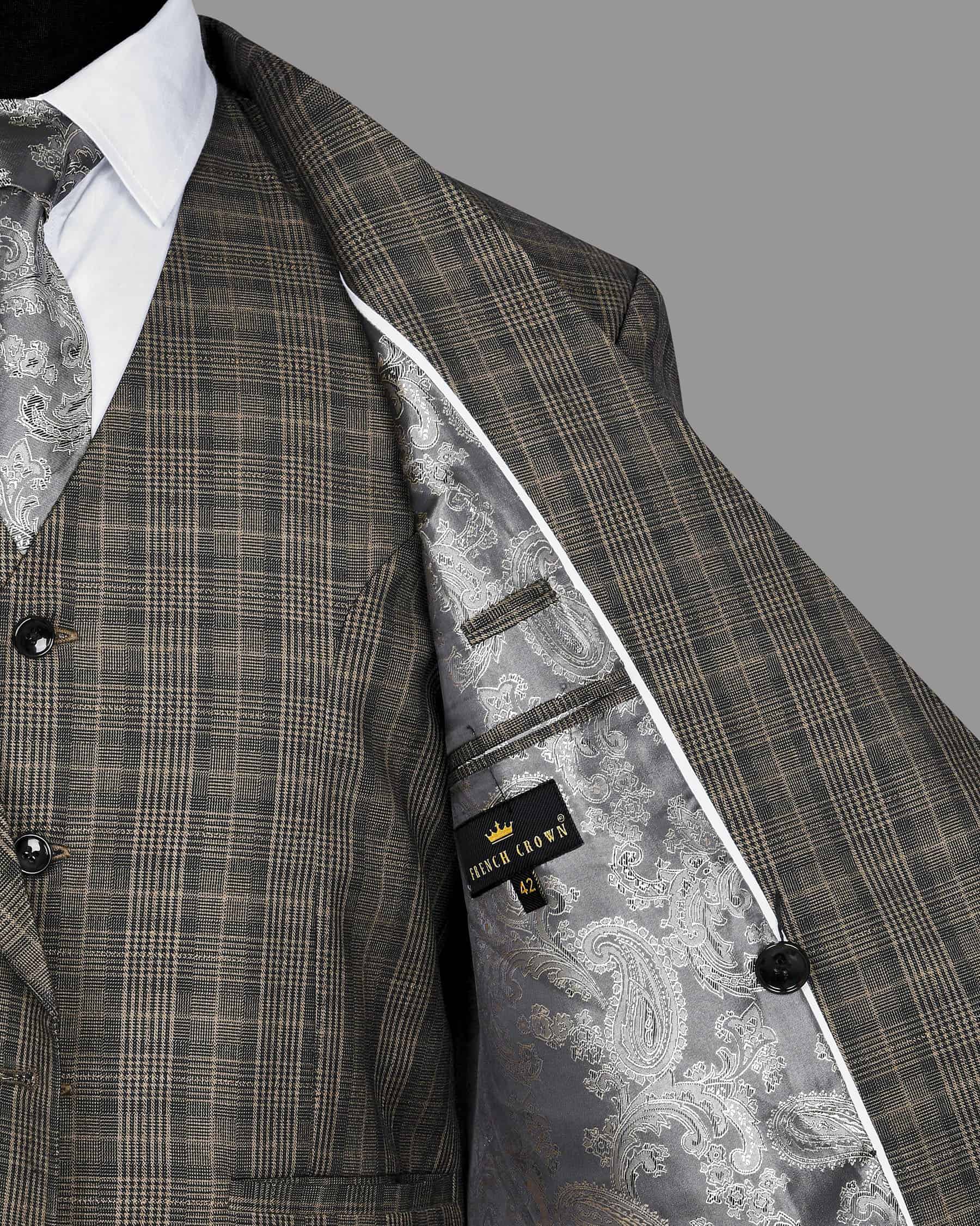 Nobel and Chicago Grey Plaid Wool Rich Tuxedo SuitNobel and Chicago Grey Plaid Wool Rich Tuxedo Suit
